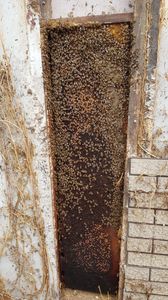 As we removed the wall sheeting from the hive we discovered a seconed layer beneath. Suddenly our work time increased by another hour as we had to spend longer exposing the hive.