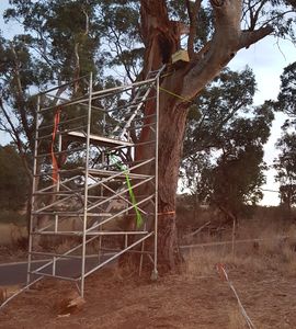 With the bees marching into the new hive we setup the scaffolding in a way that would make it easier for us to collect the hive at night in a few days time and left the bees to their own devices.